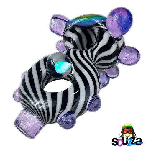 ZEBRA FOR THE WIN Step into the wild side of glass art with this hand-sculpted Opal Zebra Donut Spoon Pipe by Bash Glassworks. Featuring bold, hypn...