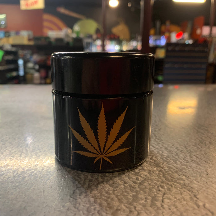 These glass screw-top stash jars have a protective UV glass. Machine blown by 420 Science, includes a permanent glass decal. The glass is super thick and will keep your dry herbs just as they were intended.