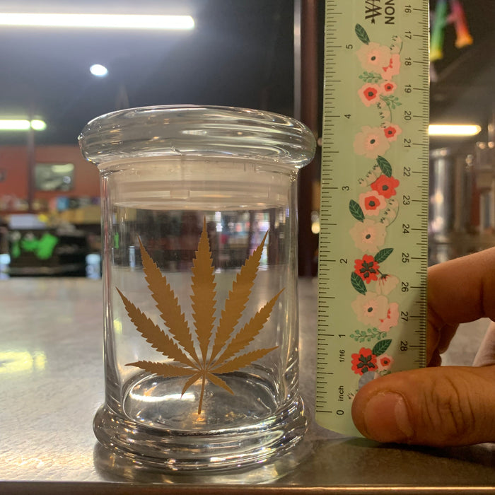 One (1) 420 Science "Gold Leaf" design Glass Pop-Top Stash Jar (choose your size)