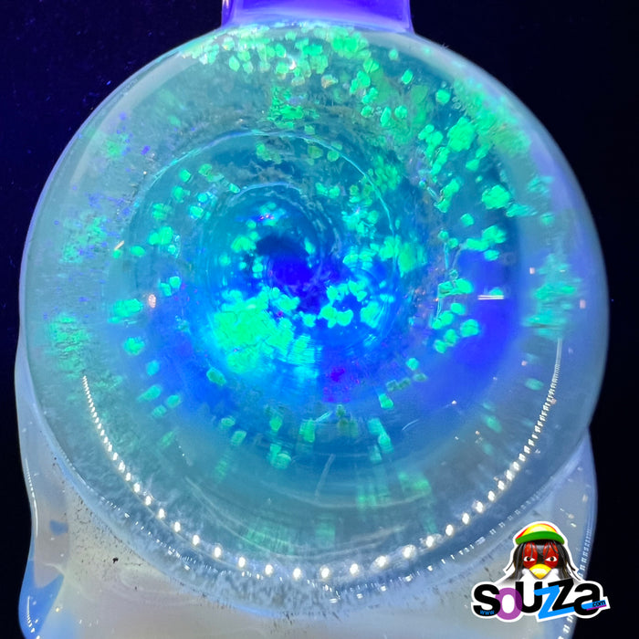 From natural daylight sparkle to hypnotic UV-reactive brilliance, this piece transforms in any setting. The swirling vortex of embedded dichro catches the eye, while the oversized format makes it the ultimate focal point in any collector's pendant lineup.
